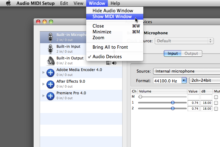From the Audio MIDI Setup main menu, goto Window>Show MIDI Window (if the MIDI window is not already shown)